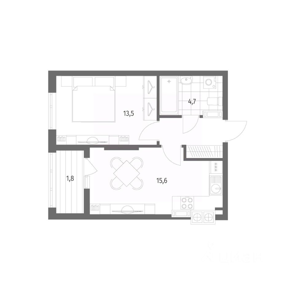 Продается квартира площадью 39.9 м² на 6 этаже 7 секции в Дом на Красной от компании ГК ''ТРЕСТ''. Площадь кухни 15.6 м². Жилой комплекс комфорт-класса ''Дом на Красной'' расположен в Центральном районе Калининграда на пересечении улиц Красная и Псковская. Жилой комплекс включает в себя два дома высотой 8 этажей. Срок сдачи намечен на 4 квартал 2026 года.