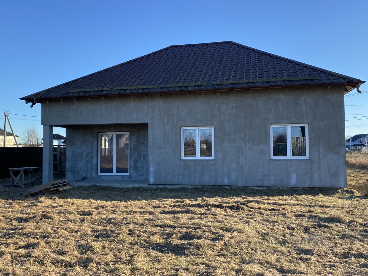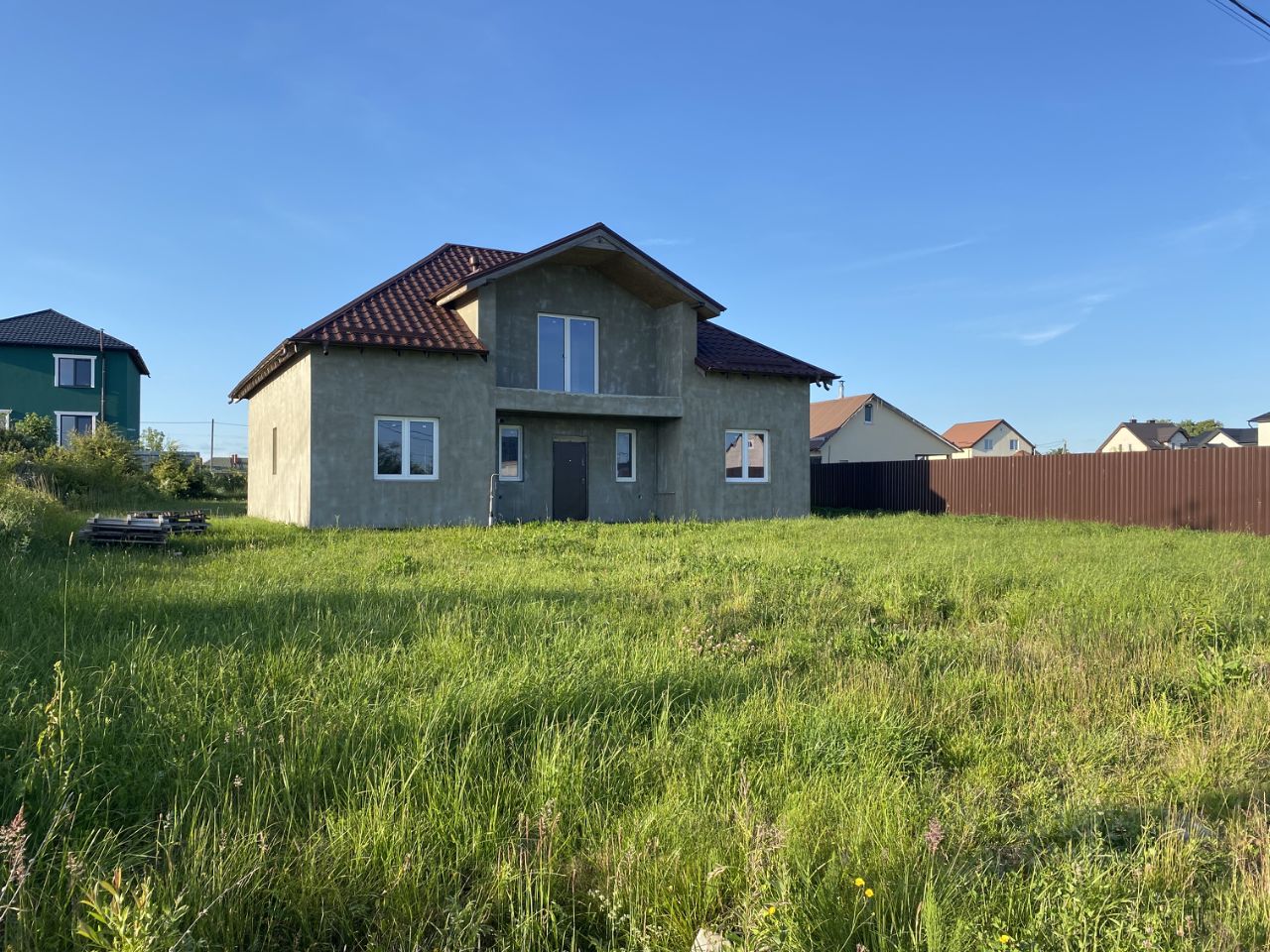 Продается большой дом в 12 км от города Калининград. Три спальни на первом этаже, совмещенный с/у с окном, бойлерная с подключенным газовым котлом, гостиная-кухня 44м2, выход на террасу во внутренний двор. Второй этаж мансардный с большим панорамным окном на южную сторону и выходом на большой балкон. Мансарда свободной планировки, планировался с/у (есть небольшое мансардное окно) и огромная детская комната, остальное помещение можно использовать под зону хранения. Смежный участок двойной, напротив нас сад. Строительство дома осуществляла строительная компания, финская металлическая черепица на крыше, ширина блоков внешних стен 30 см, глубина фундамента 70 см (дом сухой, что очень важно для региона, где высокая влажность), ширина ленты фундамента 40 см.