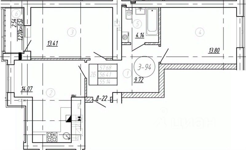 Общая площадь56,41 м2