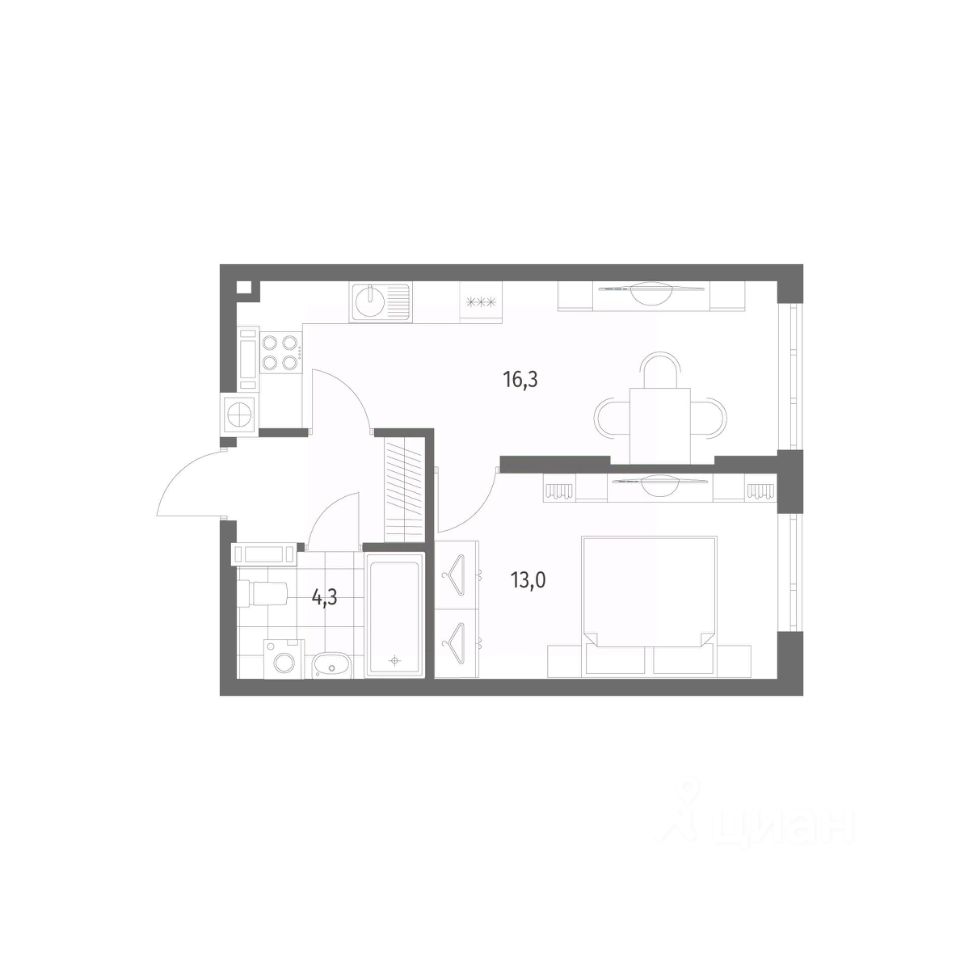 Продается квартира площадью 37.3 м² на 4 этаже 1 секции в Дом на Красной от компании ГК ''ТРЕСТ''. Площадь кухни 16.3 м². Жилой комплекс комфорт-класса ''Дом на Красной'' расположен в Центральном районе Калининграда на пересечении улиц Красная и Псковская. Жилой комплекс включает в себя два дома высотой 8 этажей. Срок сдачи намечен на 4 квартал 2026 года.