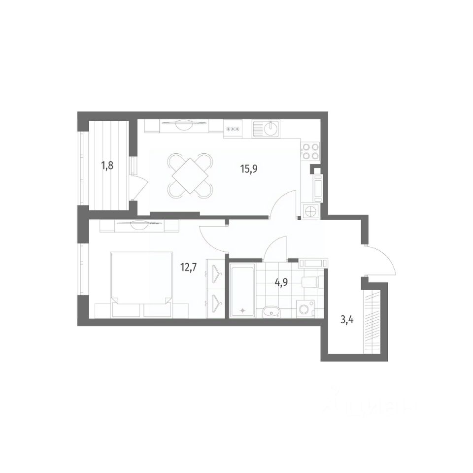 Продается квартира площадью 44.4 м² на 8 этаже 8 секции в Дом на Красной от компании ГК ''ТРЕСТ''. Площадь кухни 15.9 м². Жилой комплекс комфорт-класса ''Дом на Красной'' расположен в Центральном районе Калининграда на пересечении улиц Красная и Псковская. Жилой комплекс включает в себя два дома высотой 8 этажей. Срок сдачи намечен на 4 квартал 2026 года.