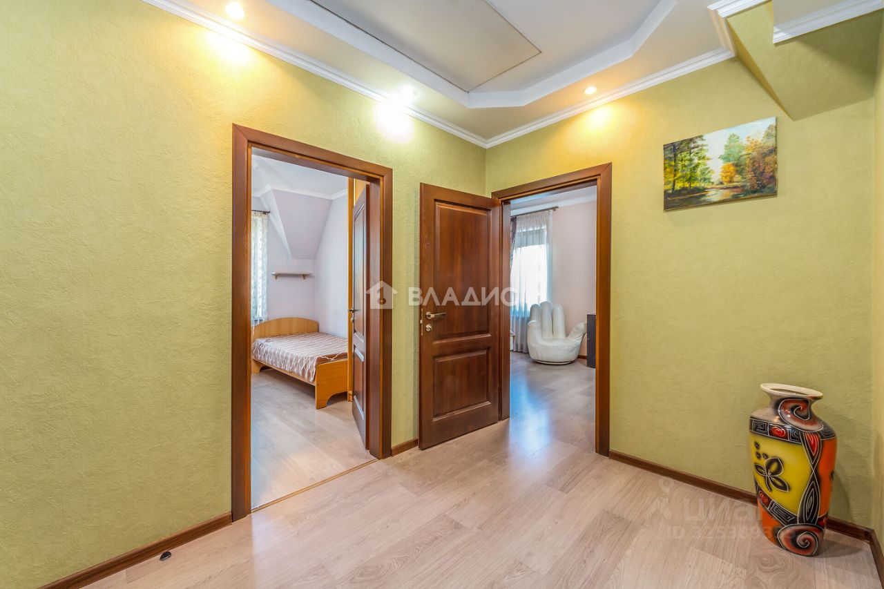 Межэтажная лестница, межкомнатные двери и наличники выполнены из натурального дерева. Дом построен из газосиликатного блока, фасад утеплен, покрыт декоративной штукатуркой и окрашен. Межэтажные перекрытия монолитные ж/бетонные. Кровля металлическая черепица,