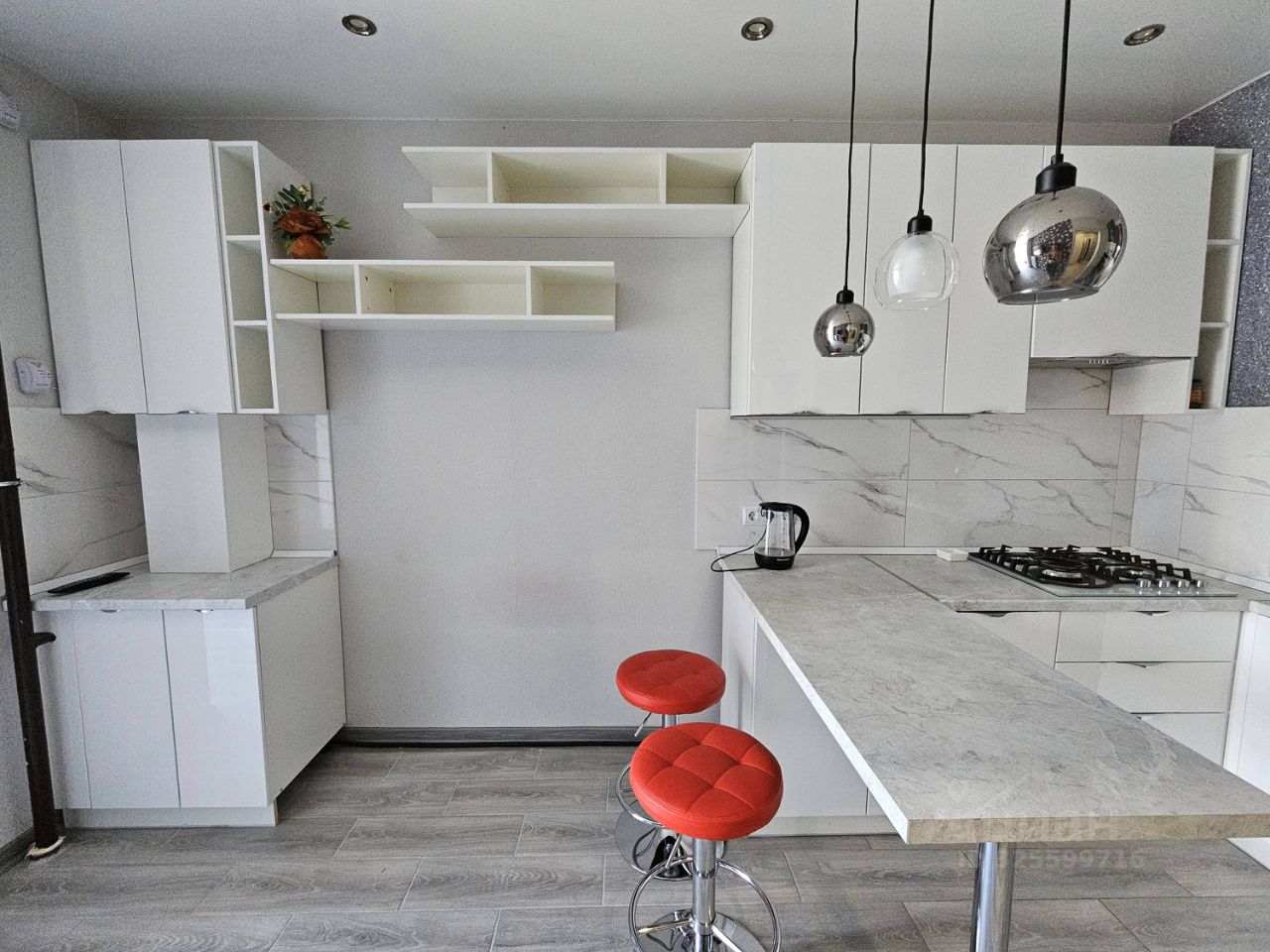 Кухня оборудована всем необходимым: газовая варочная поверхность, духовой шкаф, посудомоечная машина, холодильник и телевизор.Есть место для размещения раскладного диванчика.