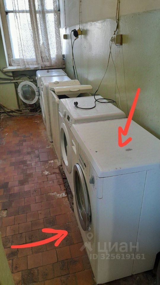 В комнате есть мебель: кровать, большой распашной шкаф, обеденный стол. В жилом помещении также есть необходимая техника: холодильник, микроволновая печь, чайник, стиральная машина, мультиварка, обогреватель, посуда, напольная сушилка.