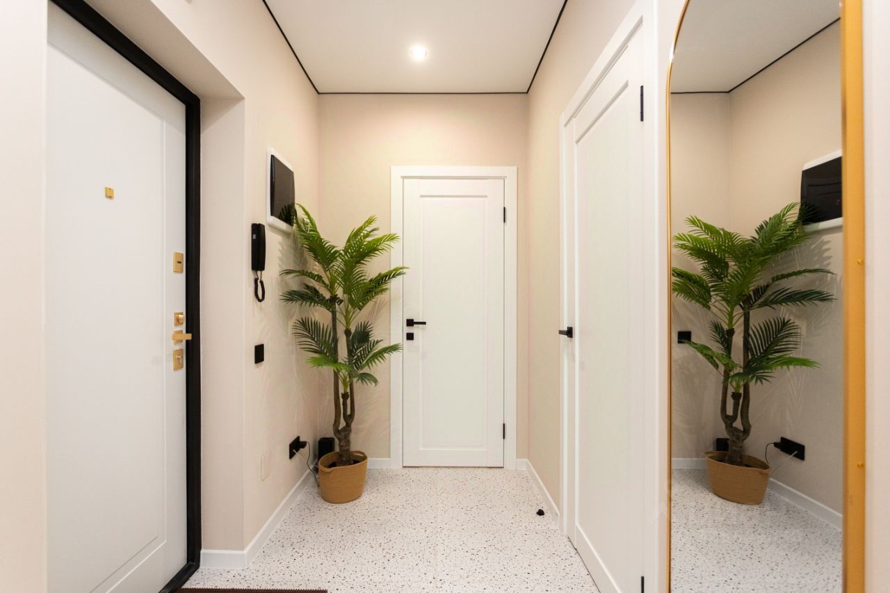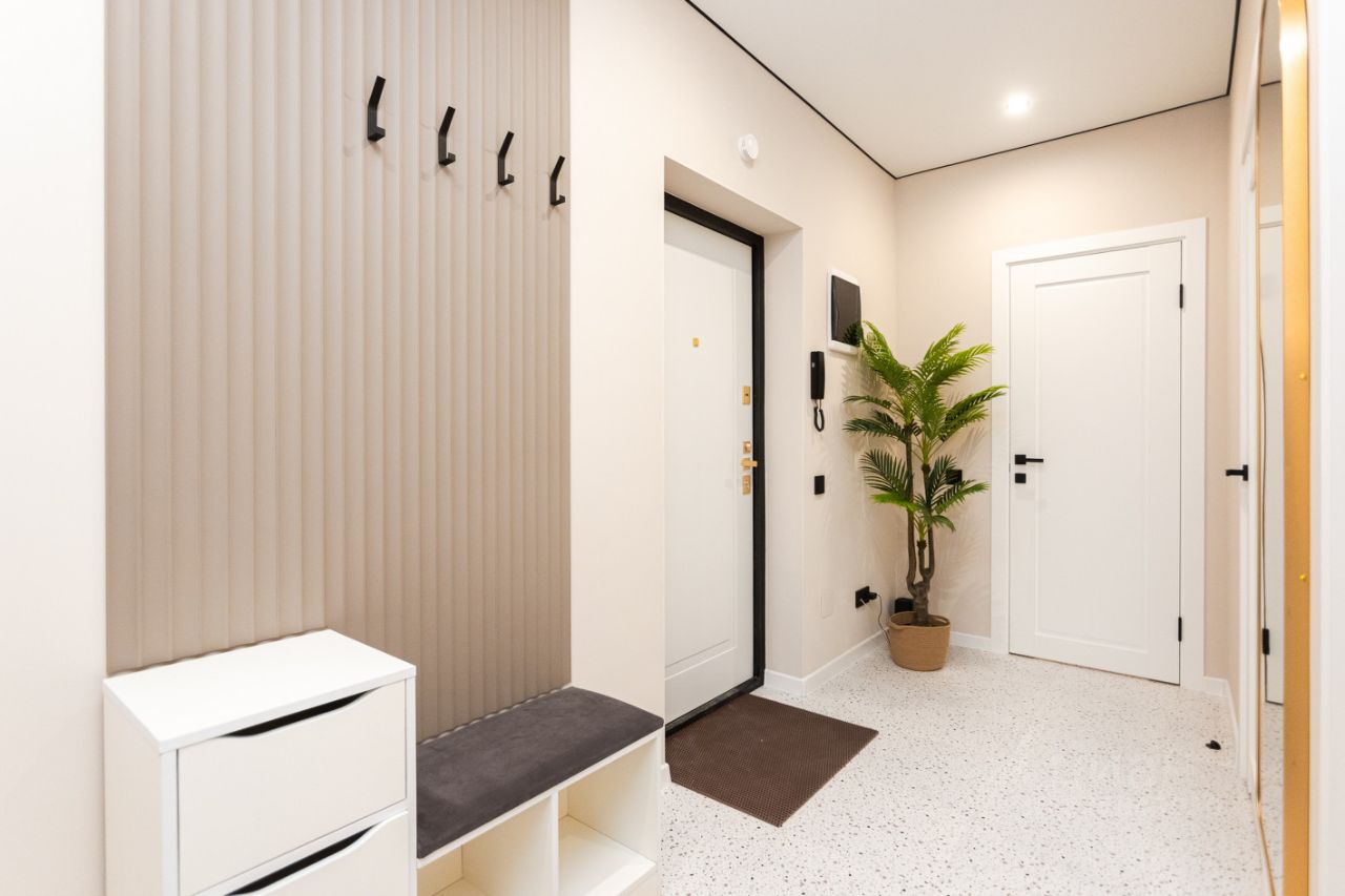 Квартира с новым дизайнерским ремонтом, укомплектована всей необходимой мебелью и техникой, в том числе и мелкой бытовой, есть посуда, столовые принадлежности и предметы быта (гладильная доска, сушилка для белья и тд).