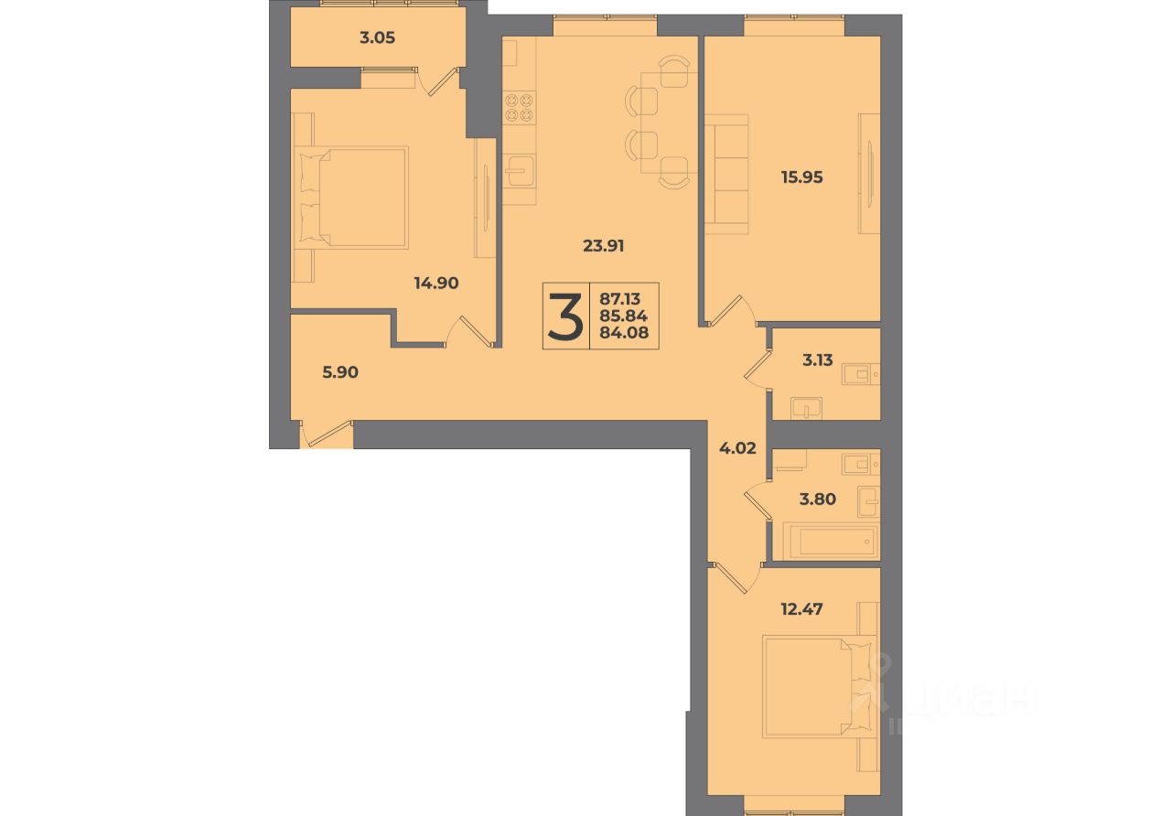 Продаётся 3-комнатная квартира в строящемся доме (Дом 8), срок сдачи: III-кв. 2026, общей площадью 87.13 кв.м., на 3 этаже. Жилой комплекс ''Родина'' представляет собой группу многоквартирных домов в Калининграде. В шаговой доступности от комплекса расположены детские сады, школа и поликлиника.