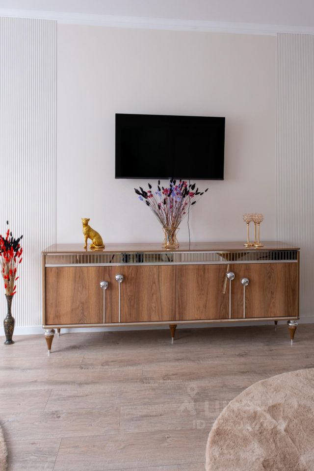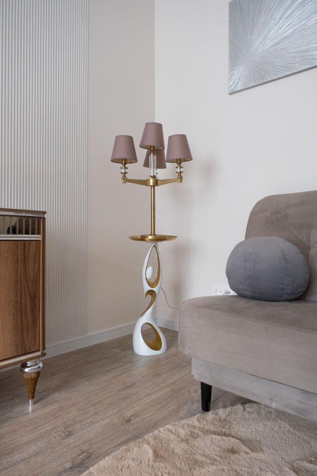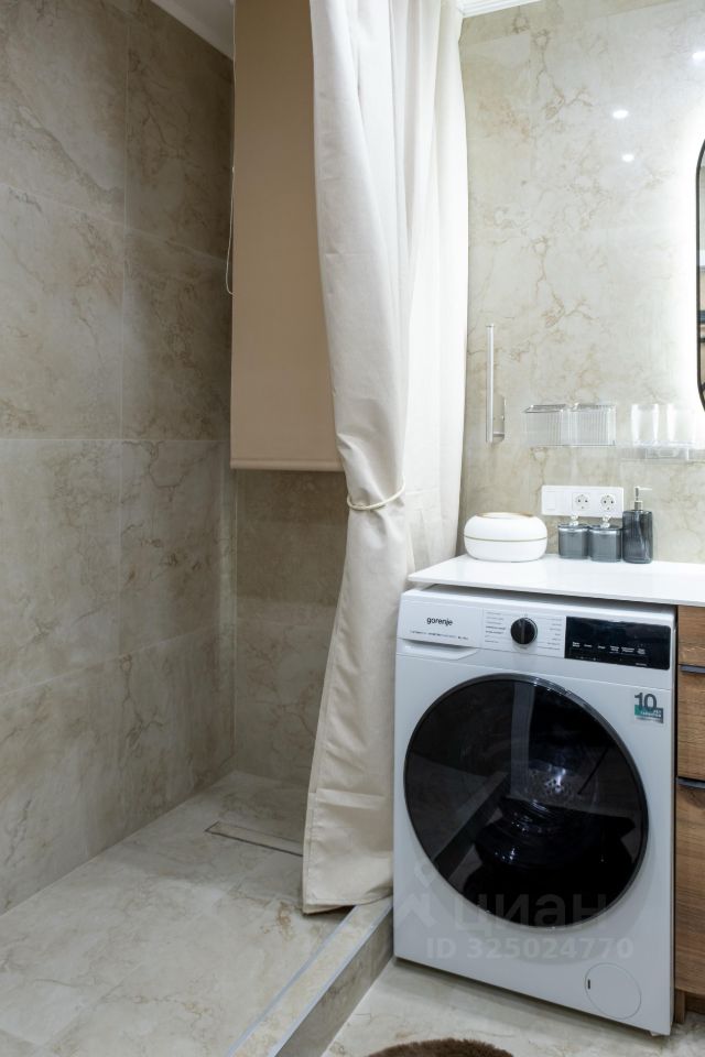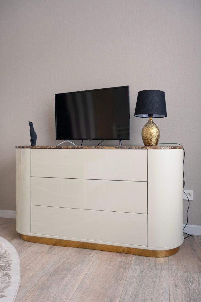 Санузел совмещенный, оформлен в современном стиле. В квартире имеется гардеробная, а также шкафы для хранения вещей. В гостиной установлен телевизор и удобный диван, создающие комфортное пространство для отдыха.