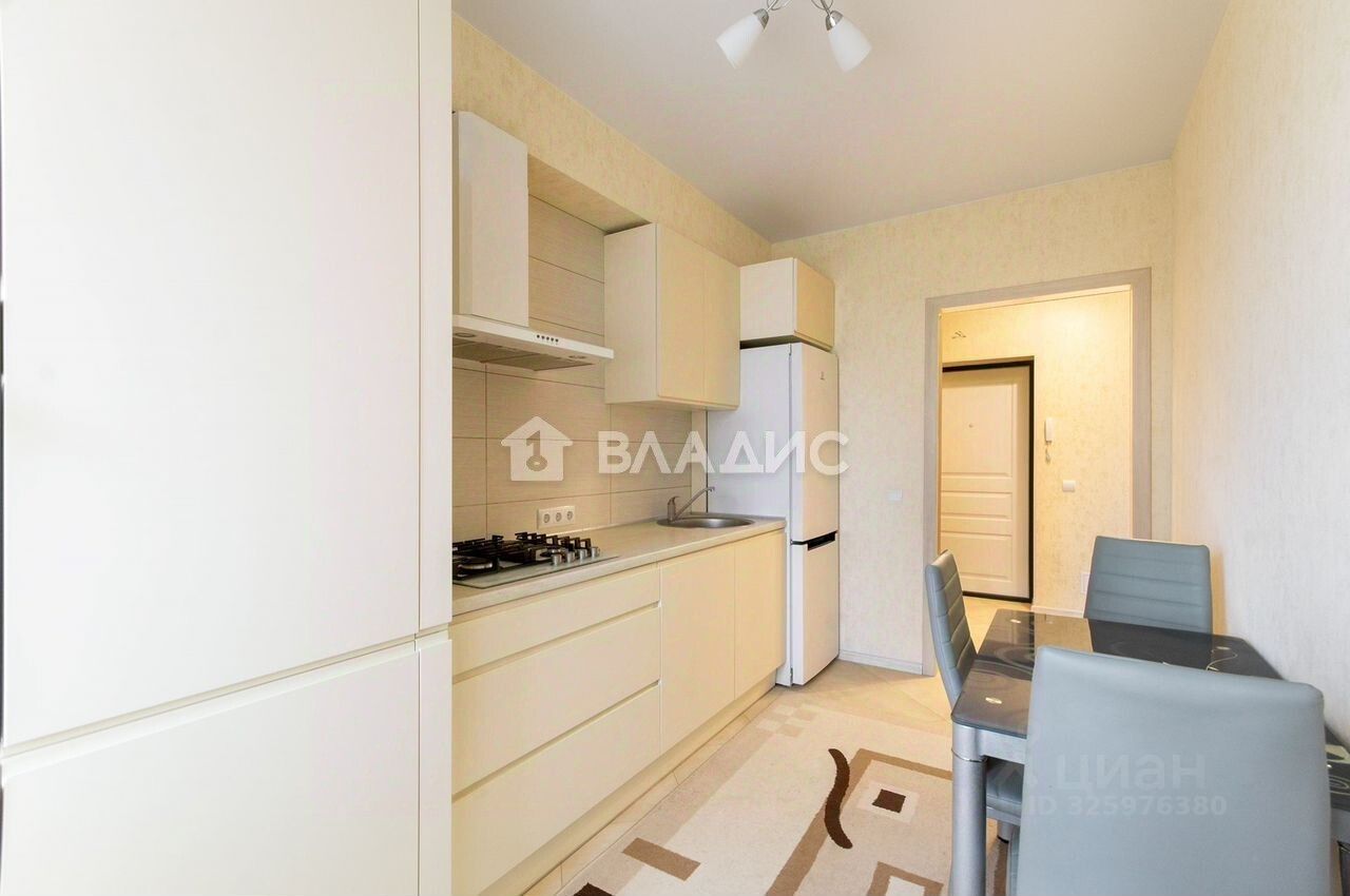 Общая площадь — 41 кв. м, жилая — 18,3 кв. м, площадь кухни — 10 кв. м.