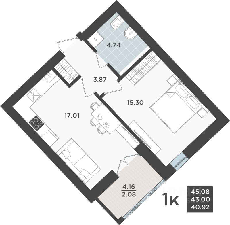 Общая площадь43 м2