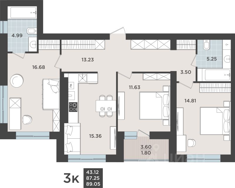 Общая площадь87,25 м2