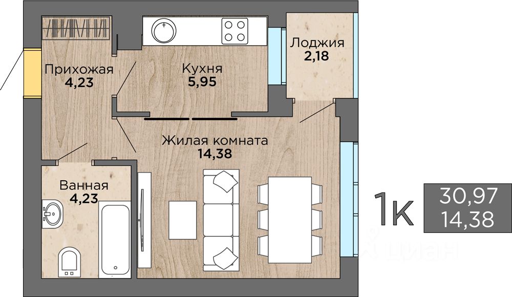 Общая площадь31,5 м2