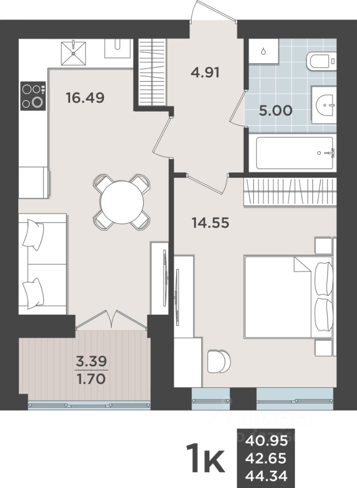 Общая площадь42,65 м2