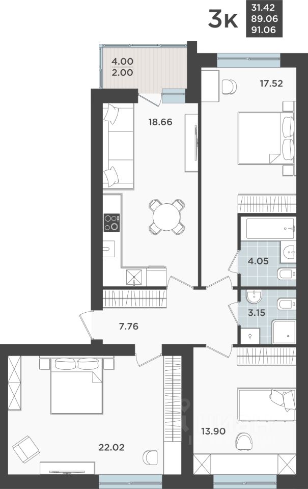 Общая площадь89,06 м2
