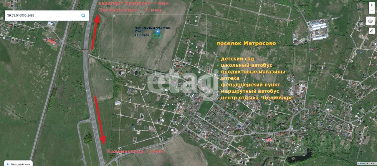 Удобная транспортная доступность: до Калининграда 13 минут без пробок, до Зеленоградска 13 минут, до аэропорта Храброво 4 минуты.