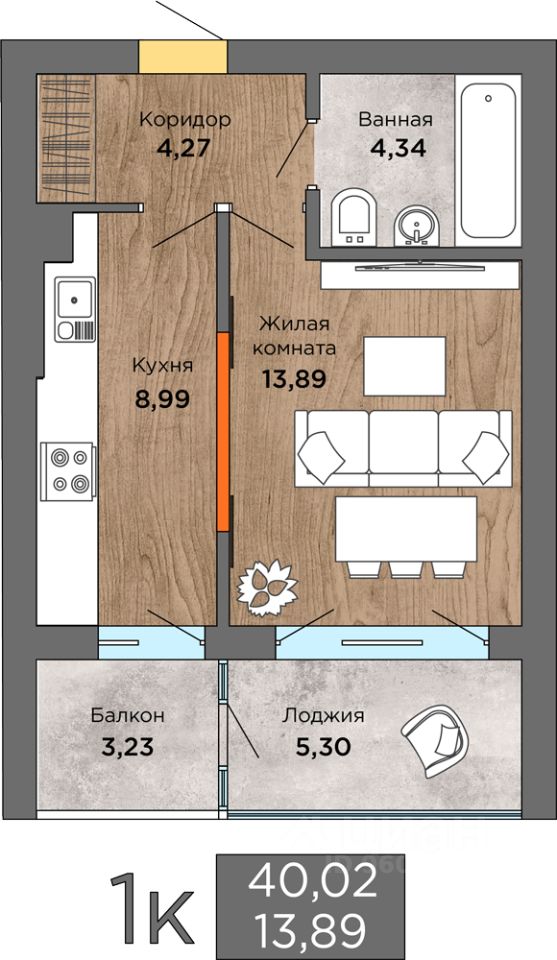 Общая площадь40 м2