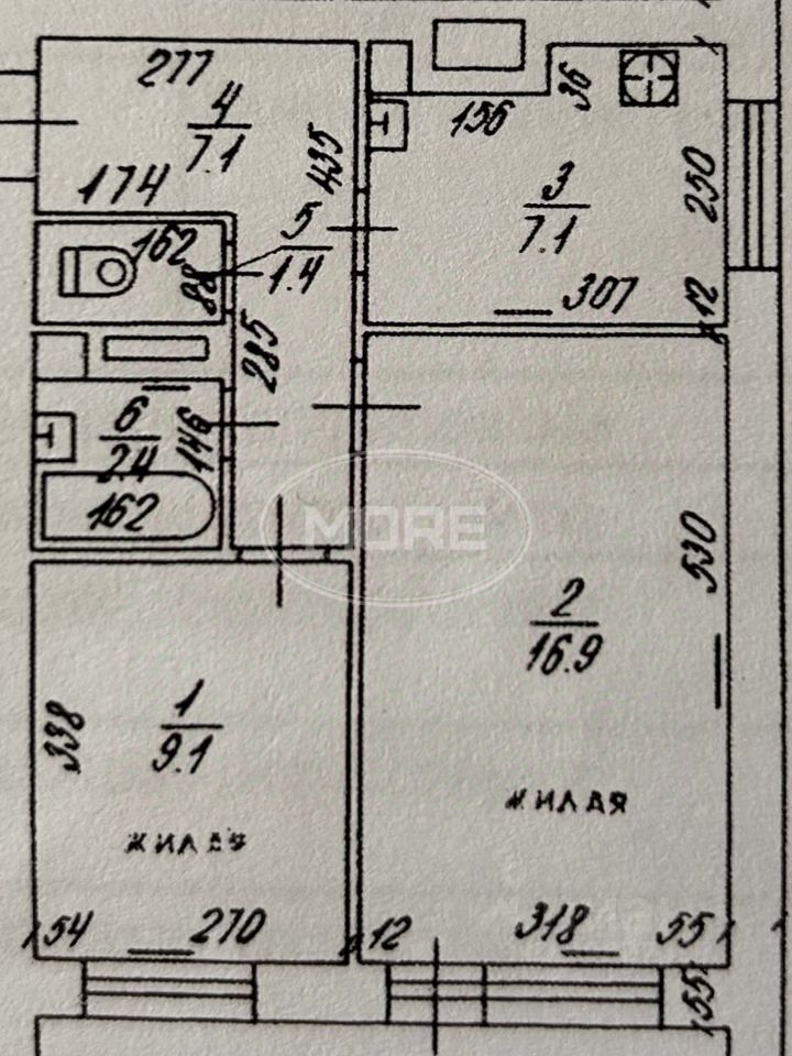 Общая площадь - 55 м2