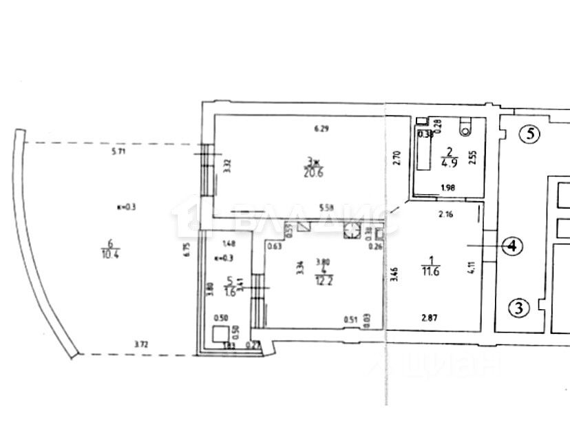 Балкон - 1,6 кв.м. с выходом из кухни.
