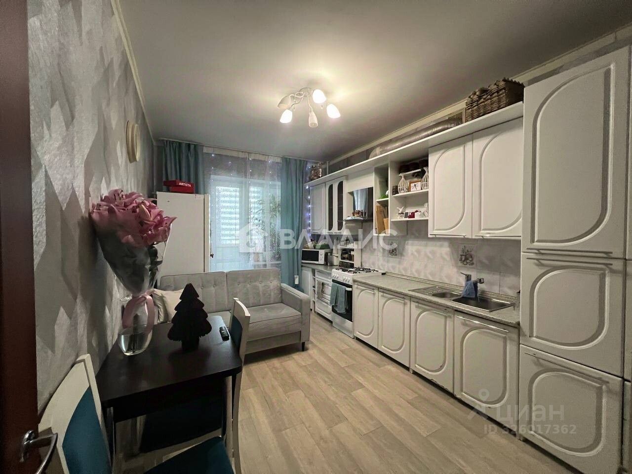 Общая площадь квартиры: 42.9 кв.м, площадь комнаты 16.5 кв.м, площадь кухни 13.4 кв.м, имеется просторная лоджия с 5.8 кв.м, с выходом из кухни и из комнаты.