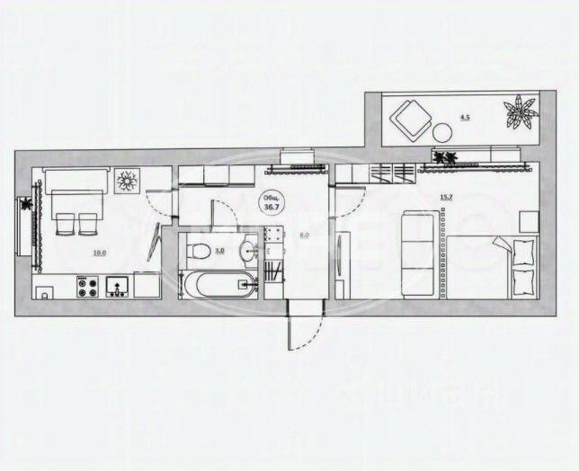 - Общая площадь 36,7 кв.м