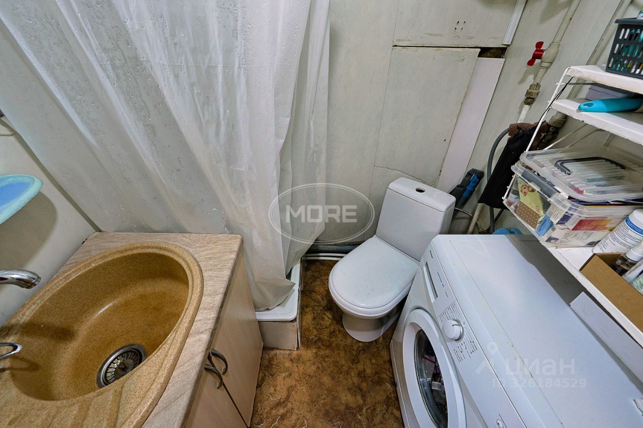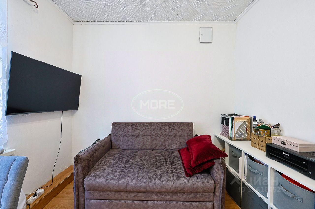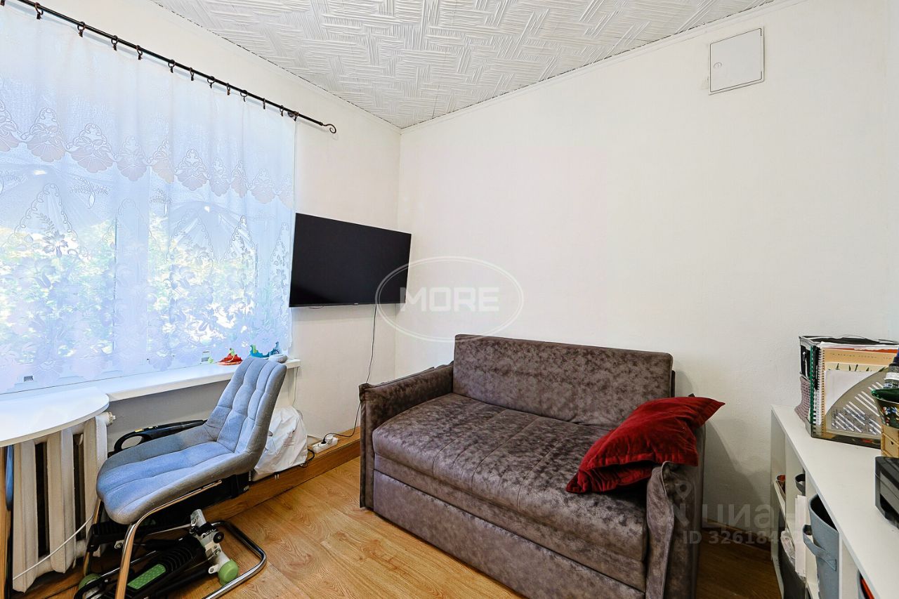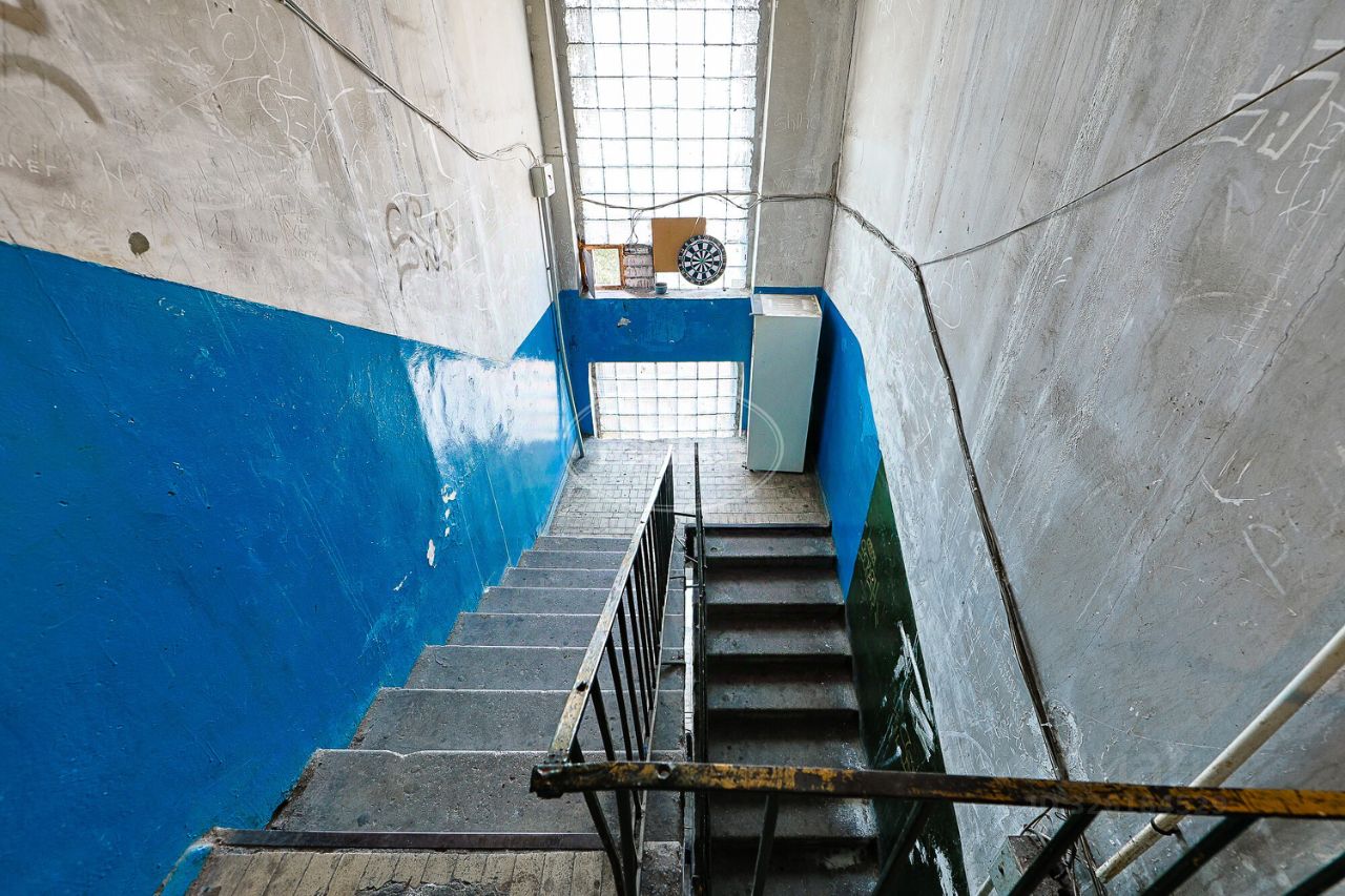 Квартира расположена на 5 этаже пятиэтажного блочного дома 1970 года постройки. Высота потолков — 2,5 метра. Жилая площадь составляет 9 кв. м, общая — 14 кв. м, кухня — 3 кв. м. В квартире сделан косметический ремонт, комнаты изолированы, окна выходят на улицу. Совмещённый санузел.
