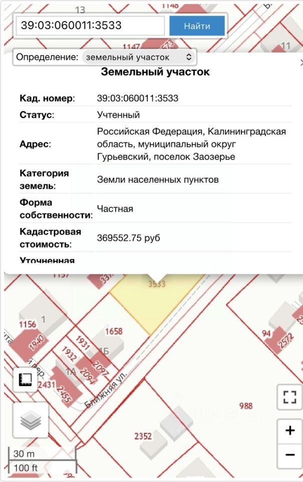 Кадастровый номер: 39:03:060011:3533 Категория земель: Земли поселений (земли населенных пунктов) для личного подсобного хозяйства