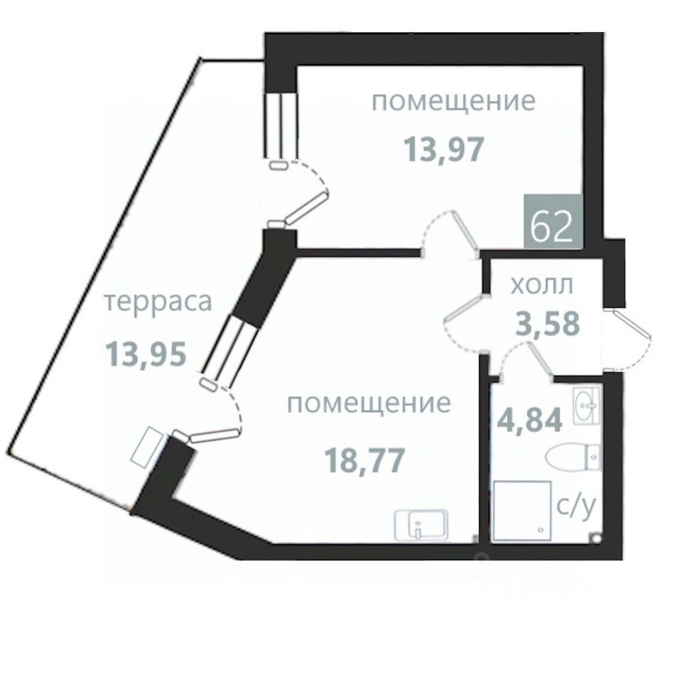 Общая площадь55,11 м2