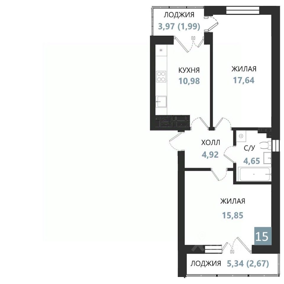 Общая площадь58,7 м2