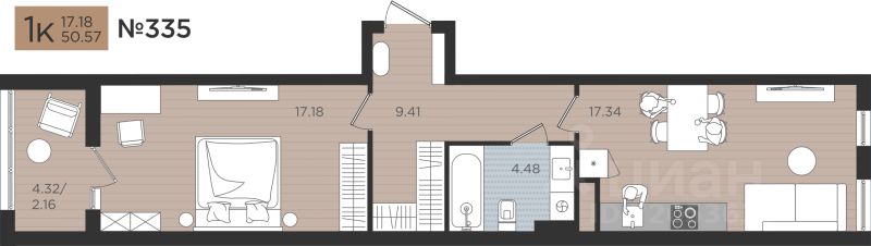 Продаётся 1-комнатная квартира в строящемся доме (Дом 3), срок сдачи: III-кв. 2026, общей площадью 50.57 кв.м., на 3 этаже. Новые жилые дома от Специализированного застройщика ''Самолет Калининград Плюс'' расположены в г. Калининград на ул. Советский проспект.