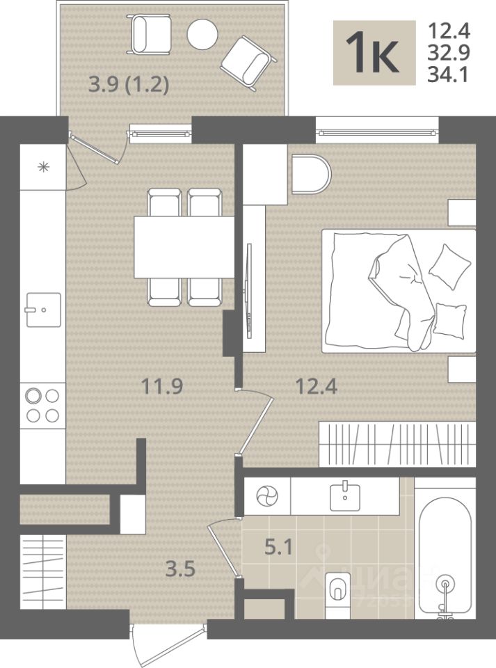 Продаётся 1-комнатная квартира в строящемся доме (Дом 1.1), срок сдачи: IV-кв. 2026, общей площадью 34.1 кв.м., на 6 этаже. Новый жилой комплекс ''МОре'' от Строительной компании ''Меркурий'' расположен по адресу: Калининградская область, г. Пионерский, пос. Рыбное.