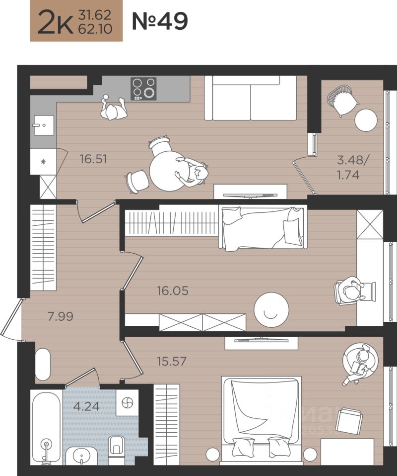 Продаётся 2-комнатная квартира в строящемся доме (Дом 3), срок сдачи: III-кв. 2026, общей площадью 62.1 кв.м., на 2 этаже. Новые жилые дома от Специализированного застройщика ''Самолет Калининград Плюс'' расположены в г. Калининград на ул. Советский проспект.