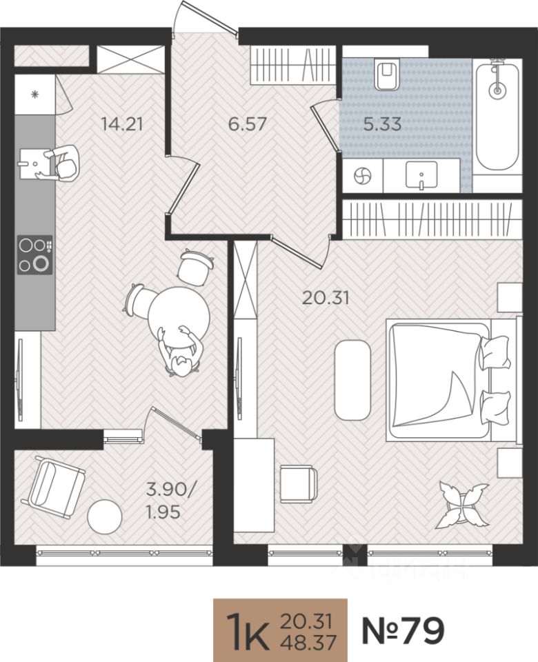 Продаётся 1-комнатная квартира в строящемся доме (Дом 5), срок сдачи: I-кв. 2027, общей площадью 48.37 кв.м., на 2 этаже. Новые жилые дома от Специализированного застройщика ''Самолет Калининград Плюс'' расположены в г. Калининград на ул. Советский проспект.