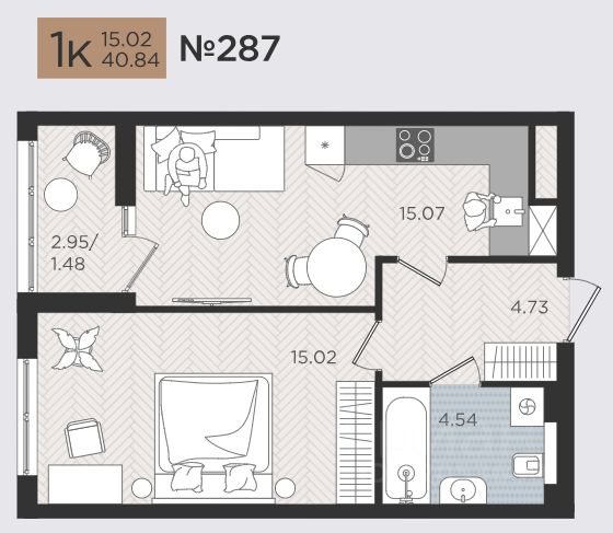 Продаётся 1-комнатная квартира в строящемся доме (Дом 3), срок сдачи: III-кв. 2026, общей площадью 40.84 кв.м., на 3 этаже. Новые жилые дома от Специализированного застройщика ''Самолет Калининград Плюс'' расположены в г. Калининград на ул. Советский проспект.