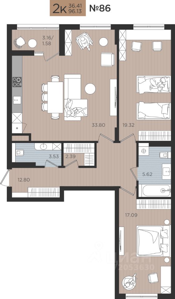 Продаётся 2-комнатная квартира в строящемся доме (Дом 4), срок сдачи: I-кв. 2027, общей площадью 96.13 кв.м., на 4 этаже. Новые жилые дома от Специализированного застройщика ''Самолет Калининград Плюс'' расположены в г. Калининград на ул. Советский проспект.