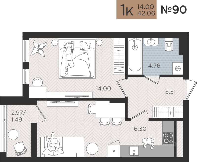 Продаётся 1-комнатная квартира в строящемся доме (Дом 3), срок сдачи: III-кв. 2026, общей площадью 42.06 кв.м., на 6 этаже. Новые жилые дома от Специализированного застройщика ''Самолет Калининград Плюс'' расположены в г. Калининград на ул. Советский проспект.