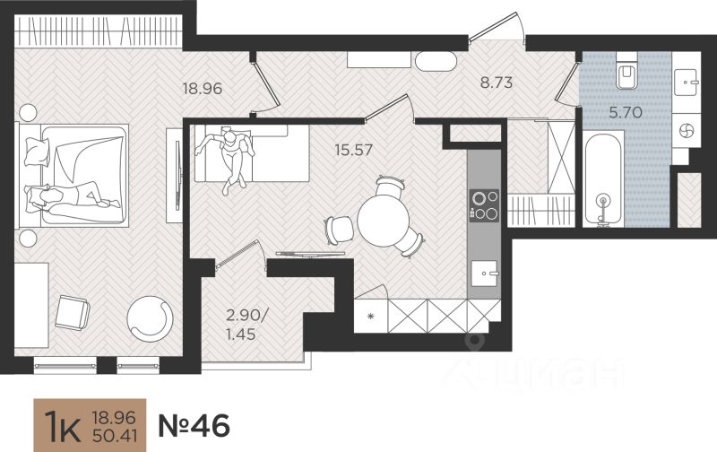 Продаётся 1-комнатная квартира в строящемся доме (Дом 3), срок сдачи: III-кв. 2026, общей площадью 50.41 кв.м., на 2 этаже. Новые жилые дома от Специализированного застройщика ''Самолет Калининград Плюс'' расположены в г. Калининград на ул. Советский проспект.