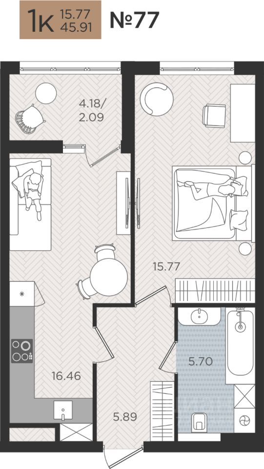 Продаётся 1-комнатная квартира в строящемся доме (Дом 5), срок сдачи: I-кв. 2027, общей площадью 45.91 кв.м., на 4 этаже. Новые жилые дома от Специализированного застройщика ''Самолет Калининград Плюс'' расположены в г. Калининград на ул. Советский проспект.