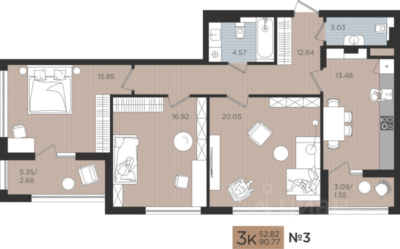 продам 3-к квартира17 790 920 ₽