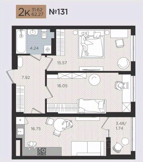 Продаётся 2-комнатная квартира в строящемся доме (Дом 3), срок сдачи: III-кв. 2026, общей площадью 62.27 кв.м., на 4 этаже. Новые жилые дома от Специализированного застройщика ''Самолет Калининград Плюс'' расположены в г. Калининград на ул. Советский проспект.