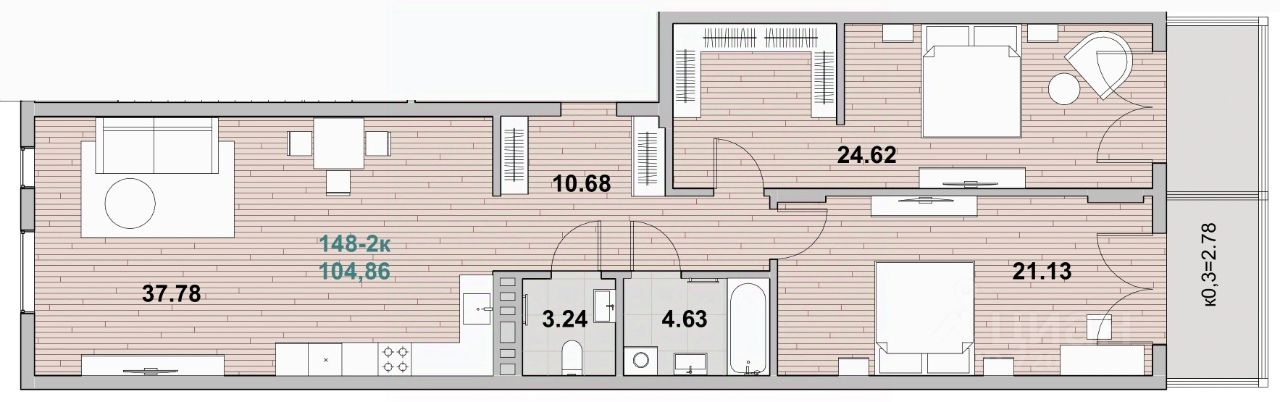 Продаётся 2-комнатная квартира в строящемся доме (Дом 1, секция 4), срок сдачи: III-кв. 2027, общей площадью 104.3 кв.м., на 1 этаже. Новый жилой комплекс ''Морская лагуна'' от Специализированного застройщика ''БСК'' расположен в г. Зеленоградск на ул. Гагарина.