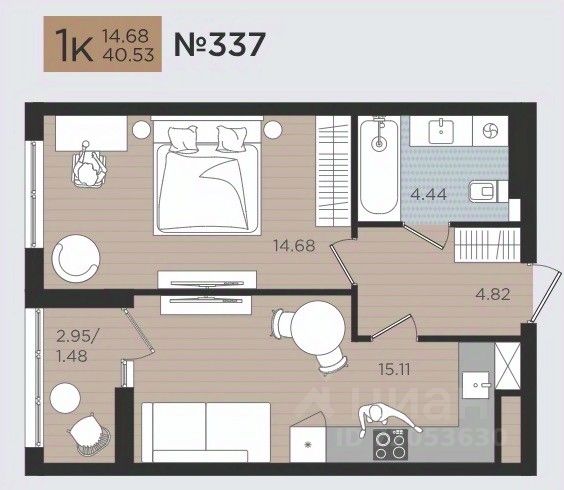 Продаётся 1-комнатная квартира в строящемся доме (Дом 3), срок сдачи: III-кв. 2026, общей площадью 40.53 кв.м., на 3 этаже. Новые жилые дома от Специализированного застройщика ''Самолет Калининград Плюс'' расположены в г. Калининград на ул. Советский проспект.