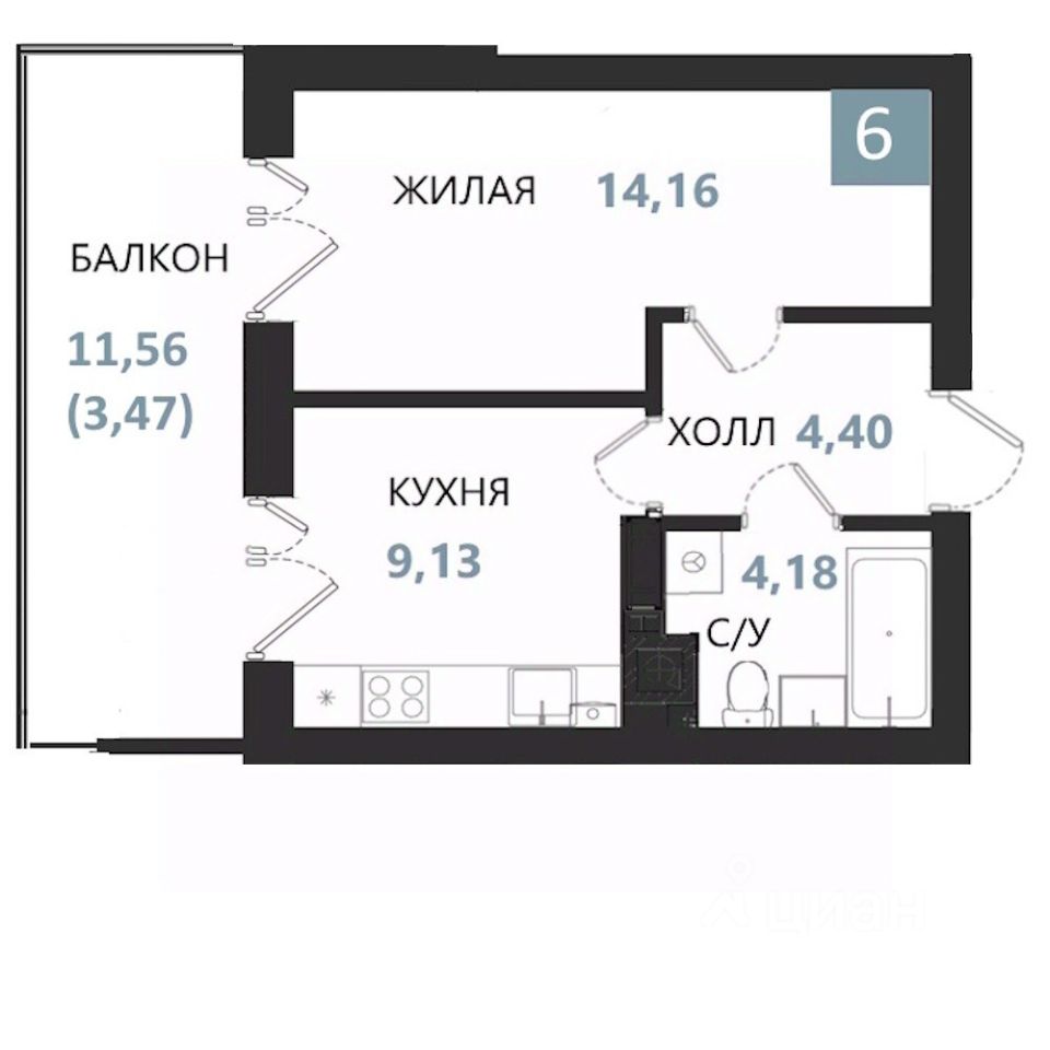Общая площадь35,34 м2