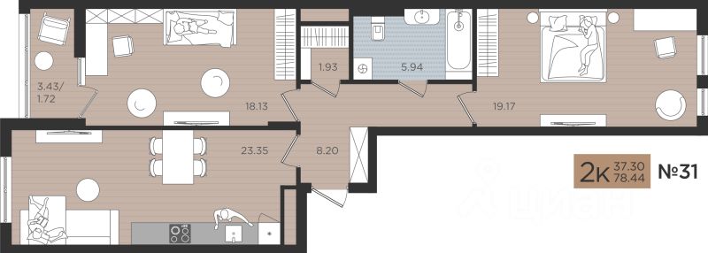Продаётся 2-комнатная квартира в строящемся доме (Дом 4), срок сдачи: I-кв. 2027, общей площадью 78.44 кв.м., на 6 этаже. Новые жилые дома от Специализированного застройщика ''Самолет Калининград Плюс'' расположены в г. Калининград на ул. Советский проспект.