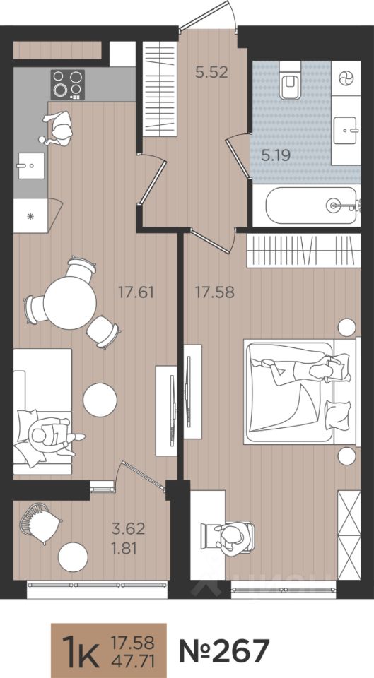 Продаётся 1-комнатная квартира в строящемся доме (Дом 3), срок сдачи: III-кв. 2026, общей площадью 47.71 кв.м., на 6 этаже. Новые жилые дома от Специализированного застройщика ''Самолет Калининград Плюс'' расположены в г. Калининград на ул. Советский проспект.