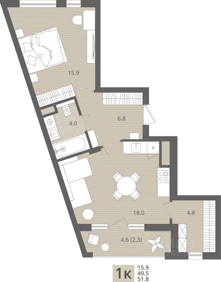 Продаётся 1-комнатная квартира в строящемся доме (Дом 1.1), срок сдачи: IV-кв. 2026, общей площадью 51.8 кв.м., на 3 этаже. Новый жилой комплекс ''МОре'' от Строительной компании ''Меркурий'' расположен по адресу: Калининградская область, г. Пионерский, пос. Рыбное.