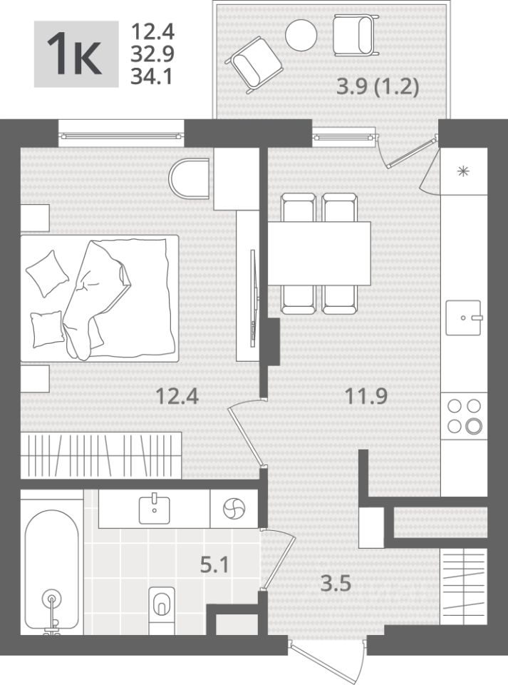 Продаётся 1-комнатная квартира в строящемся доме (Дом 1.1), срок сдачи: IV-кв. 2026, общей площадью 34.1 кв.м., на 6 этаже. Новый жилой комплекс ''МОре'' от Строительной компании ''Меркурий'' расположен по адресу: Калининградская область, г. Пионерский, пос. Рыбное.