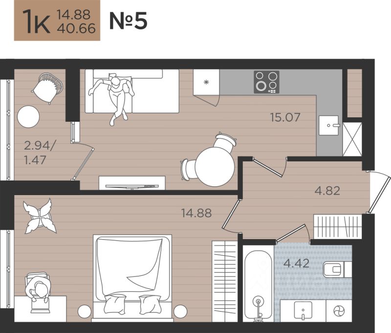 Продаётся 1-комнатная квартира в строящемся доме (Дом 5), срок сдачи: I-кв. 2027, общей площадью 40.66 кв.м., на 3 этаже. Новые жилые дома от Специализированного застройщика ''Самолет Калининград Плюс'' расположены в г. Калининград на ул. Советский проспект.