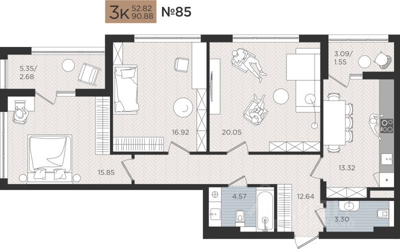 Продаётся 3-комнатная квартира в строящемся доме (Дом 4), срок сдачи: I-кв. 2027, общей площадью 90.88 кв.м., на 4 этаже. Новые жилые дома от Специализированного застройщика ''Самолет Калининград Плюс'' расположены в г. Калининград на ул. Советский проспект.