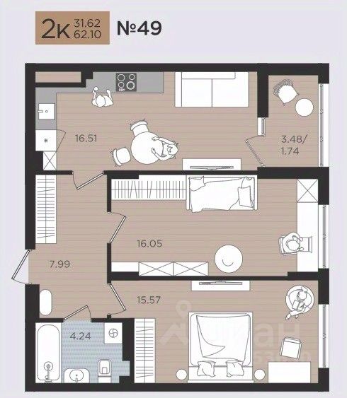 Продаётся 2-комнатная квартира в строящемся доме (Дом 3), срок сдачи: III-кв. 2026, общей площадью 62.1 кв.м., на 2 этаже. Новые жилые дома от Специализированного застройщика ''Самолет Калининград Плюс'' расположены в г. Калининград на ул. Советский проспект.