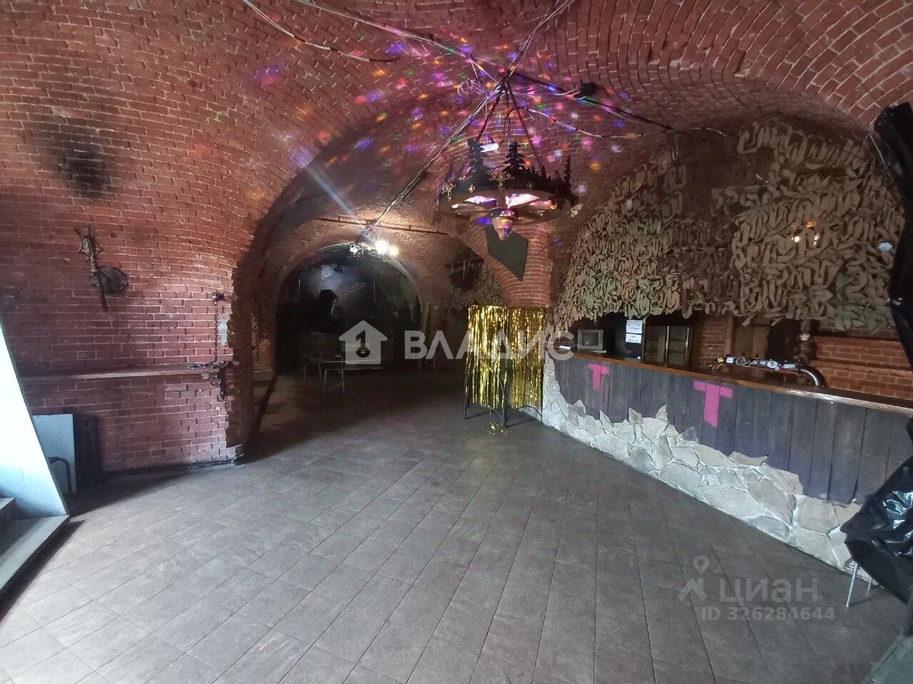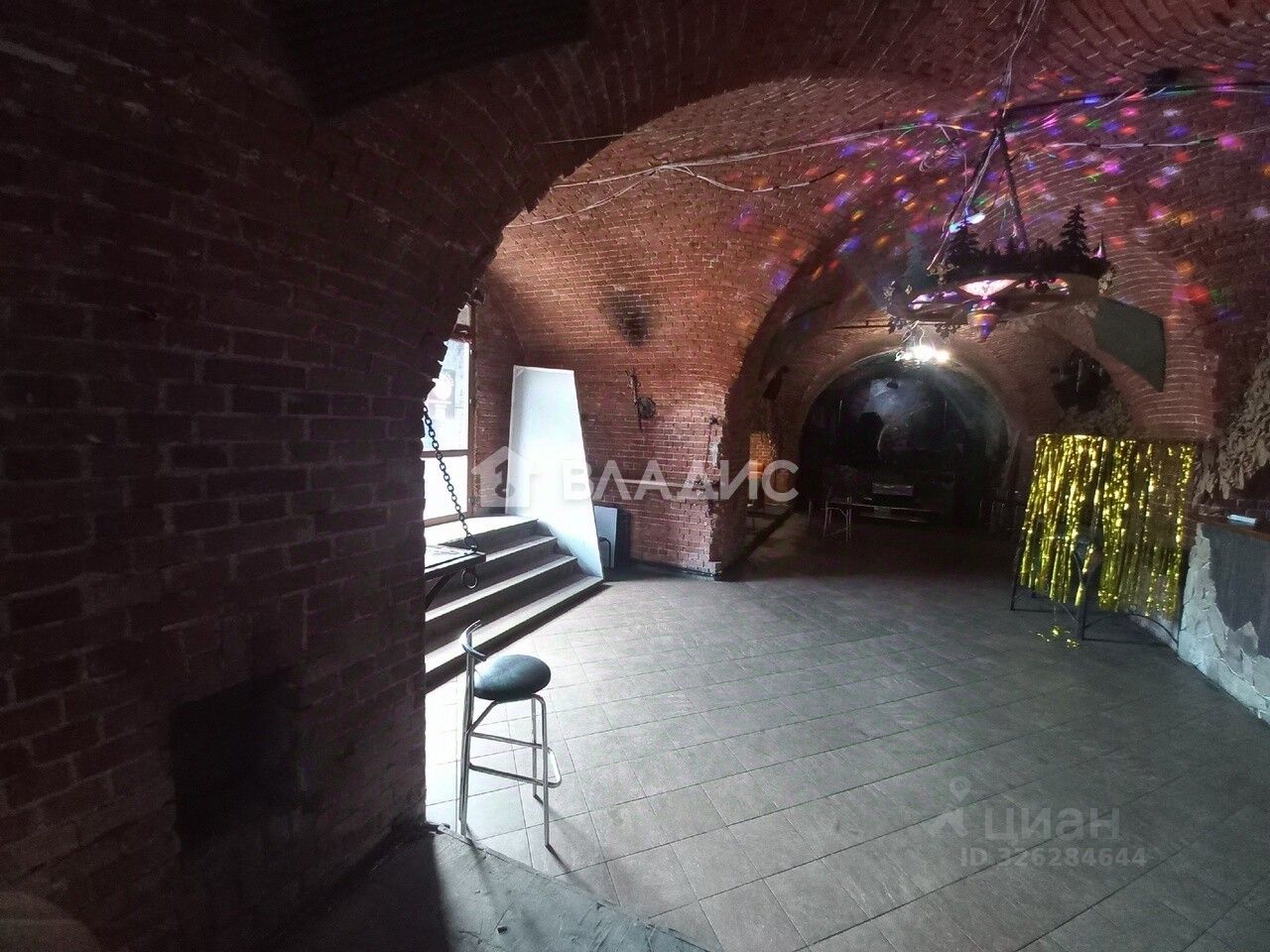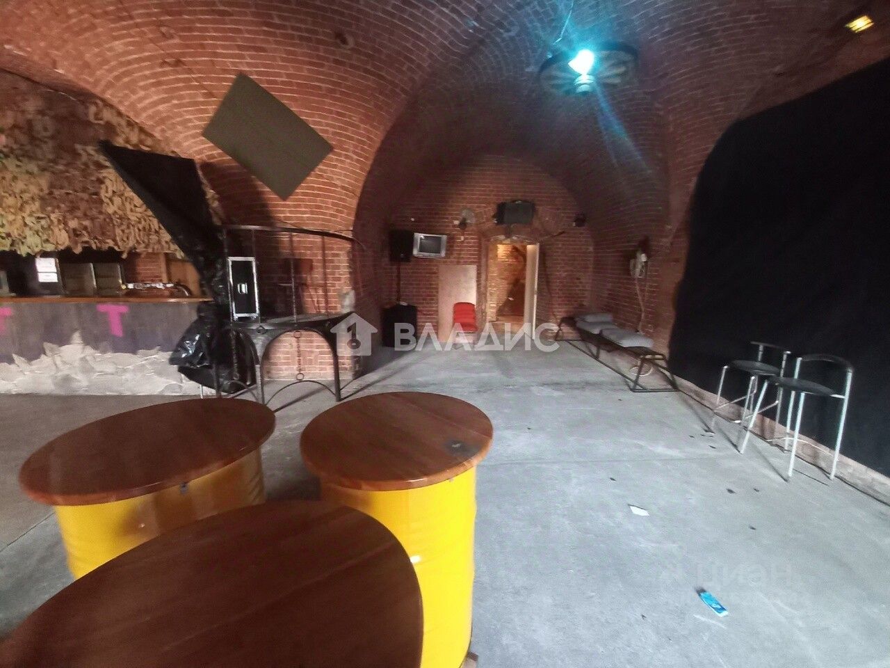 Общая площадь более 250 кв.м., несколько подсобных помещений, несколько санузлов (два мужских, два женских). Барная стойка, подсветка (световая музыка), потолки 5 метров, подиум для выступления музыкальных ансамблей.