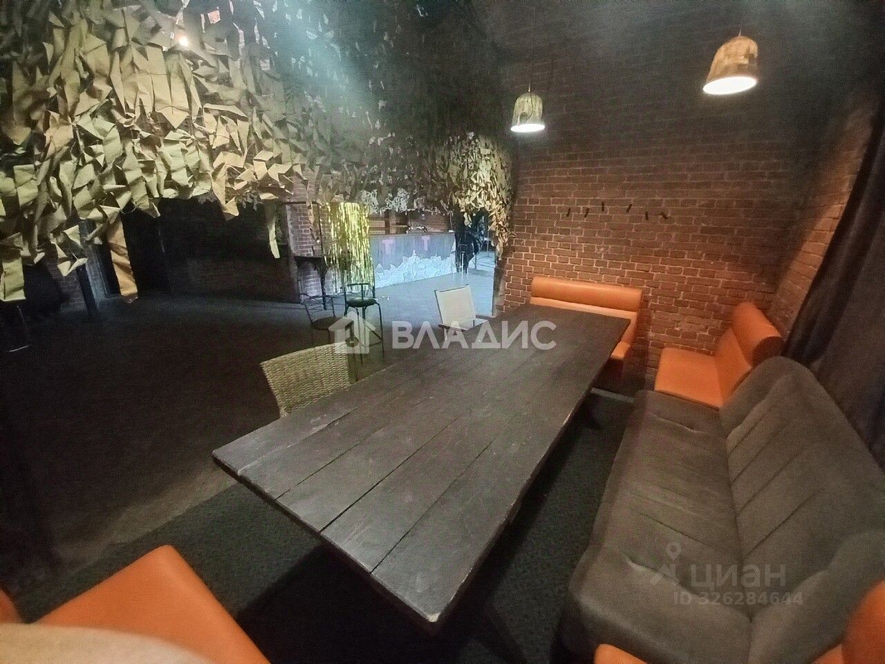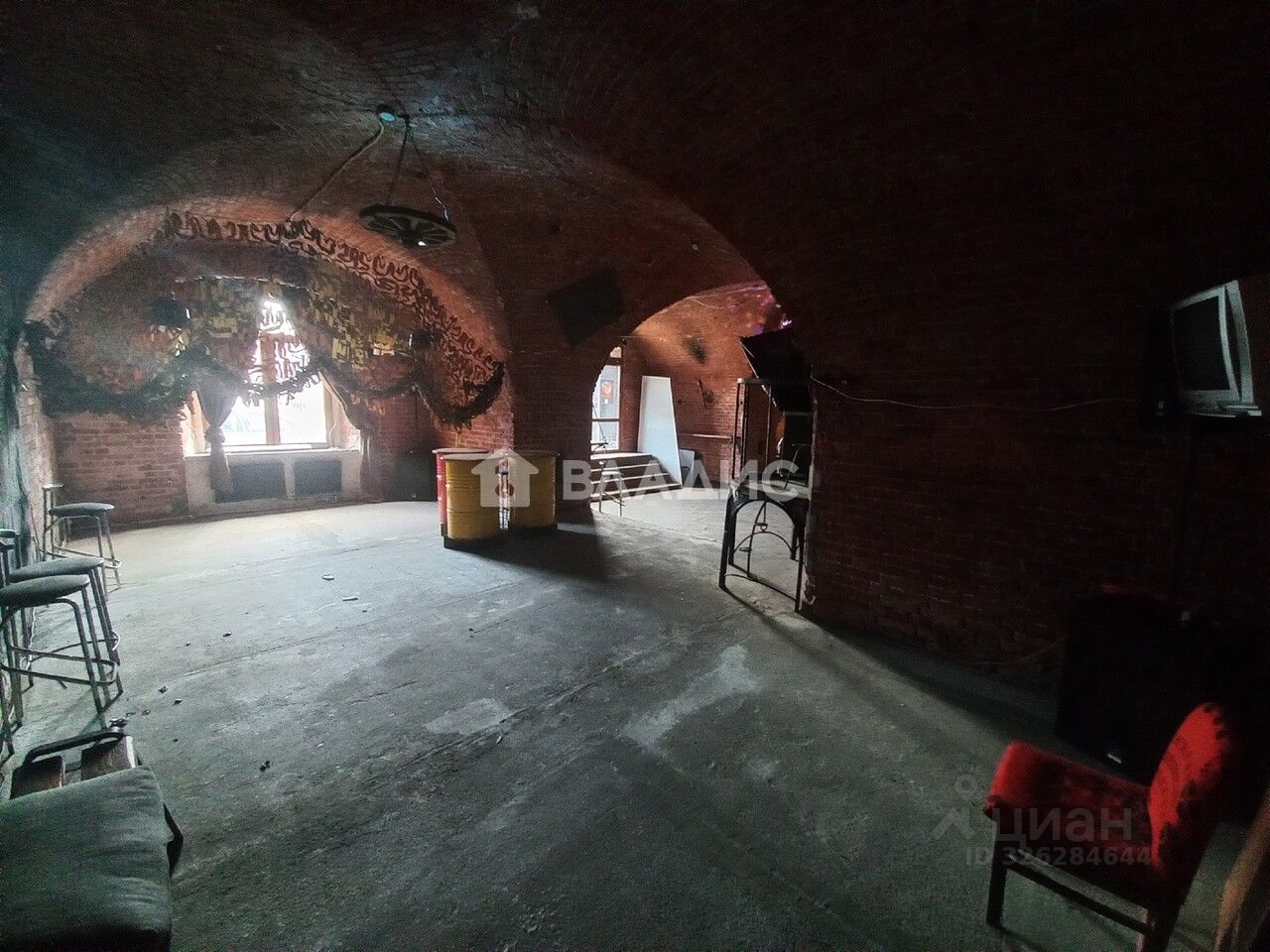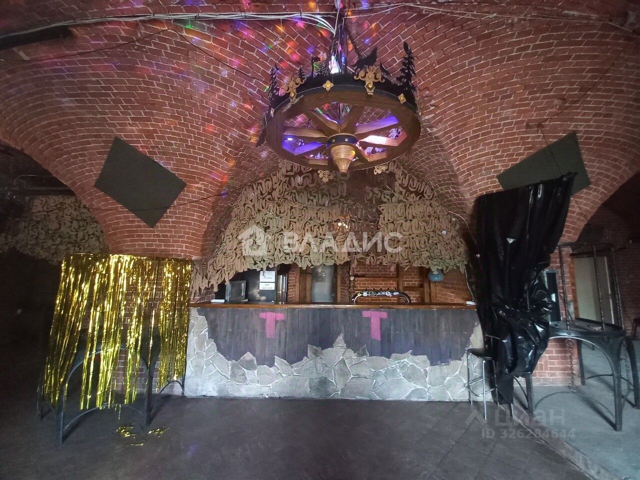 Общая площадь более 250 кв.м., несколько подсобных помещений, несколько санузлов (два мужских, два женских). Барная стойка, подсветка (световая музыка), потолки 5 метров, подиум для выступления музыкальных ансамблей.